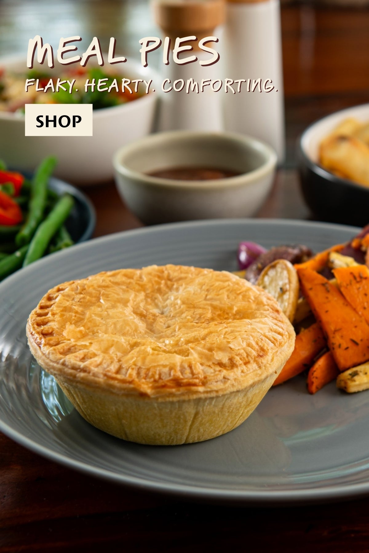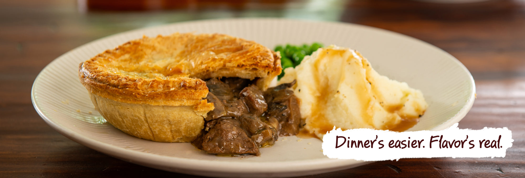 Our golden, flaky pies are made with real ingredients and a dash of joy —